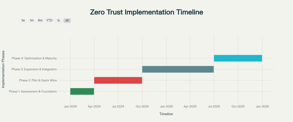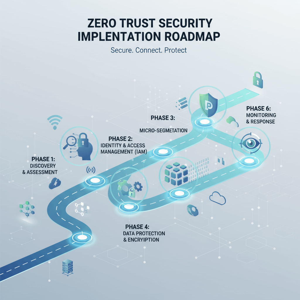 Successful Zero Trust adoption requires a structured, phased approach that delivers incremental value while managing organizational change: